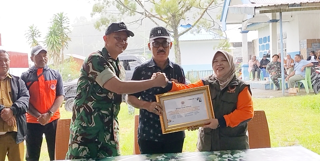HALBAR – Badan Nasional Penanggulangan Bencana (BNPB) menyerahkan secara simbolis Bantuan logistik dan peralatan kepada Pemerintah Kabupaten Halmahera Barat, Maluku Utara.