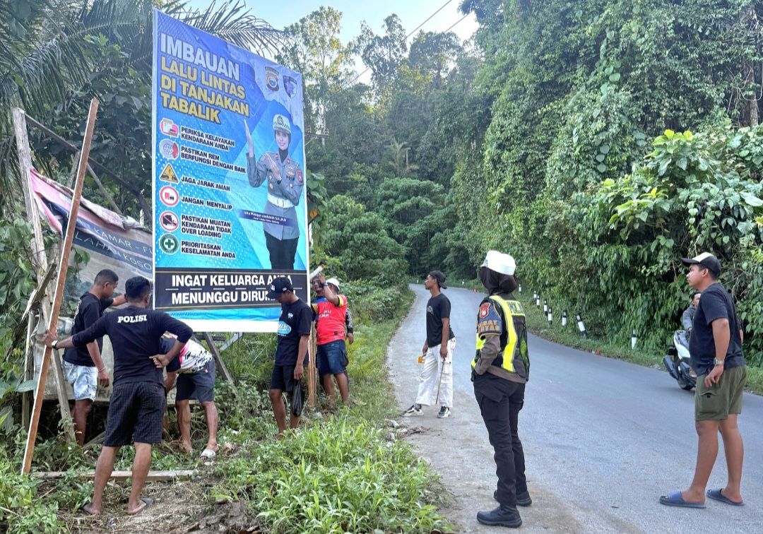 Himbawan yang dilakukan Satlantas berupa pemasangan imbauan keselamatan berlalu lintas di sejumlah titik yang diangkab rawan salah satunya di tanjakan Tabalik.
