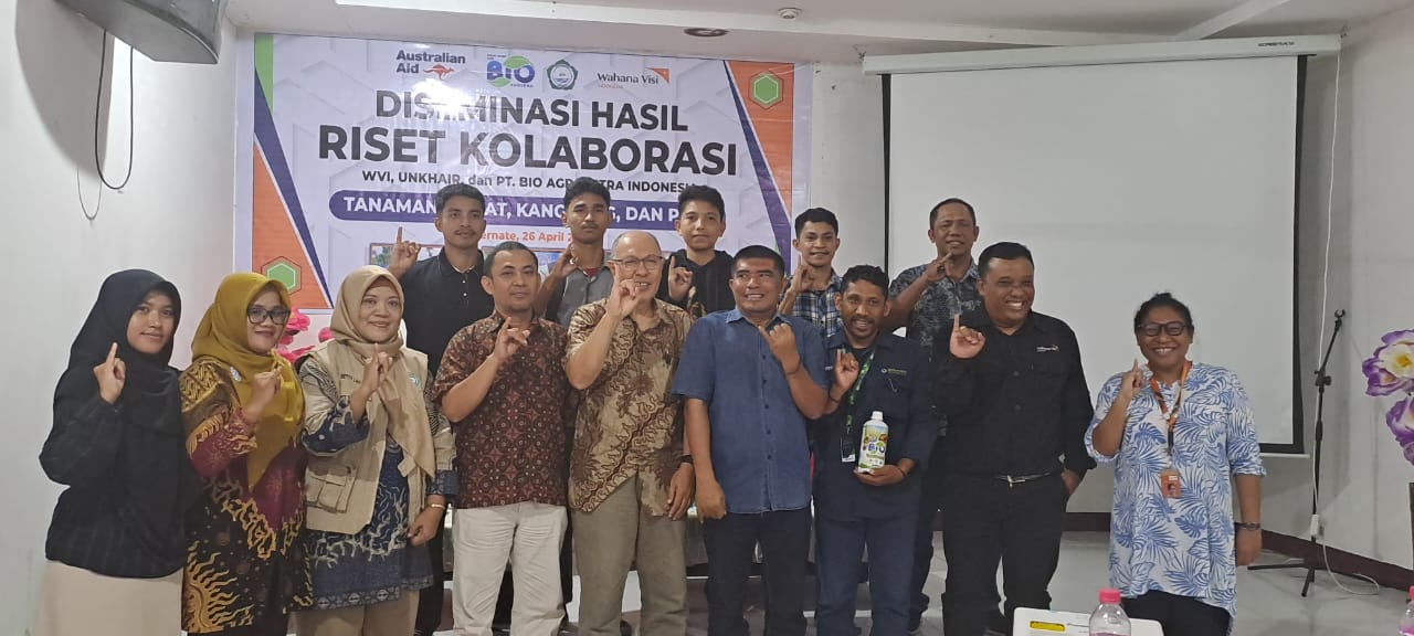 Purwono Budhi Rahmadi, Team Leader Inclusion Project WVI Maluku Utara, menambahkan: “Diseminasi ini bukan hanya tentang berbagi hasil riset, tetapi tentang memperkuat sinergi antar lembaga untuk perubahan nyata di lapangan. Melalui Inclusion Project, kami ingin memastikan bahwa petani kecil, perempuan, dan kelompok rentan punya akses yang sama terhadap pengetahuan, teknologi, dan pasar. Kolaborasi dengan UNKHAIR dan Bio Agromitra Indonesia memperkaya pendekatan kami dan mempercepat dampak yang kami harapkan di komunitas.”