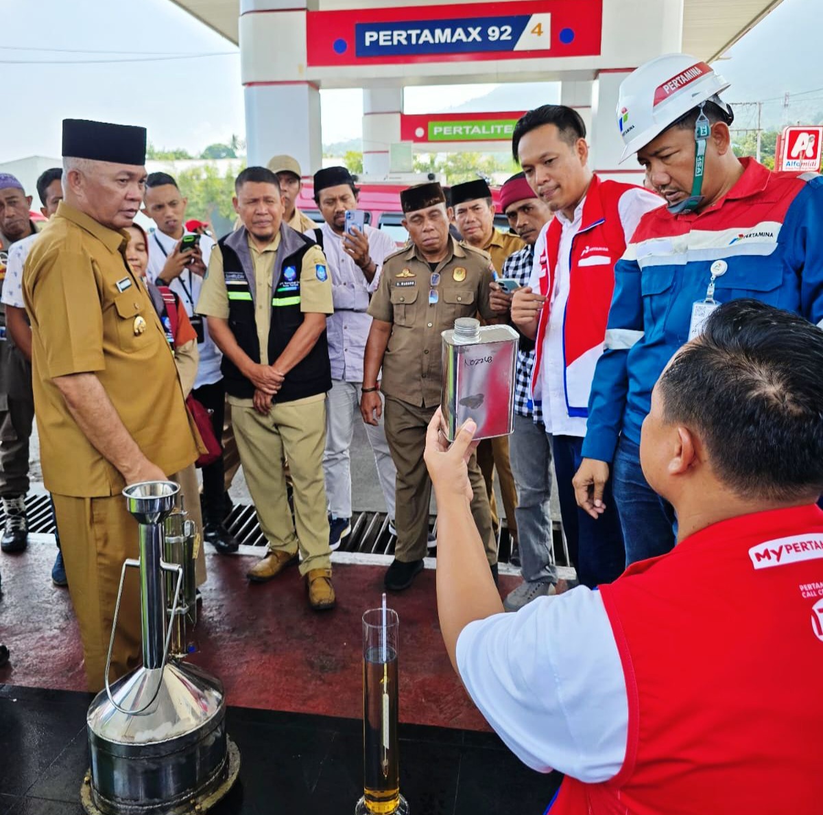 Wakil Walikota Ternate Nasri Abubakar secara langsung turut memberikan arahan untuk manajemen SPBU setelah memeriksa kualitas produk yang tersedia.